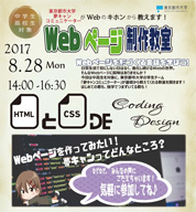 ![]() 日常生活で目にしない日はなく、 進化し続けるWebの世界。 そんなWebページに興味はありませんか? 今回は中高生を対象に、 東京都市大学の学生チーム 「夢キャンコミュニケーター」が 基礎から教えてくれる教室を開きます! はじめてのきみも、独学でつまづいているきみも、 Webページ制作のキホンを学んでみよう! お申し込みは夢キャンパスホームページから 定員: 15名 対象: 中学生~高校生(事前申し込み制・先着順) 参加費: 無料 ※会場では記録・広報のため写真撮影を行う予定です。 不都合がある場合は、当日会場にてお申し出ください。 【主催】 東京都市大学 【協力】 せたがやeカレッジ(世田谷区教育委員会/国士舘大学/駒澤大学/昭和女子大学/東京都市大学/東京農業大学) |
