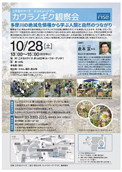 ![]() 多摩川の絶滅危惧種のカワラノギクから人間と自然のつながりを学ぼう! 身近な自然を学ぶと、教養を広げ創造性を高めることにつながります。皆様お誘い合わせの上、奮ってご参加ください。 定員: 20名 参加費: 無料 持ち物: タオル・帽子・飲み物 ※汚れても良い服装 【概要】 ①倉本教授による解説 ②植物観察 ③グループワーク ※雨天の場合は中止いたします。 【申込み・問合せ】 電話受付: 03-3303-2215 箱根植木 担当: 北村 期間: 10月1日~10月25日 ※定員になり次第受付終了 |