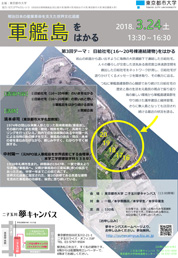 ![]() 2015年、軍艦島を含む「明治日本の産業革命遺産 製鉄・鉄鋼・造船・石炭産業」が世界文化遺産に登録されました。 1974年の閉山以来、無人島となった長崎県端島(軍艦島)は、厳しい自然環境により建築群の劣化・損傷が進行し、現在崩壊状態にあります。 その廃墟となりゆく貴重な建築群をテーマに、全3回にわたり一般向けにわかりやすく解説します。 【講演内容】 第3回テーマ:日給社宅(16~20号棟連結建物)をはかる 岩山の斜面から這い出すように海側の大防潮廊下で連結した日給社宅。 人々の暮らしが交差した活気ある高密度立体迷路空間を創出した日給社宅をネットワーク計測し、日給社宅が語りかけてくるメッセージを聞き取り、その魅力に迫る。 つねに軍艦島建築群の心臓部であり続けた日給社宅の歴史と島の生活を元島民の視点で振り返り、海の厳しい環境から軍艦島建築群を守り続けた護岸建設と維持管理、さらに無人島となっても注目され続ける最近の状況を語る。 【講師】 濱本 卓司(東京都市大学名誉教授) 1974年の閉山以来無人島となった長崎県端島(軍艦島)、その崩れゆく姿を視覚、聴覚、触覚を用いて、長期モニタリングを行っている。 島内での生活経験のある中村陽一氏による当時の島の様子を交え、軍艦島の過去・現在・未来の姿を重ね合わせながら、親しみやすく、わかりやすく解説する。 中村 陽一(元NPO法人軍艦島を世界遺産にする会理事/本学工学部建築学科S38卒) 1938年札幌市生まれ。 終戦後の1947年、一家で樺太より引き揚げ軍艦島へ。 父親が軍艦島の三菱砿業㈱の鉱長であったため、中学一年までこの島で過ごす。 世界文化遺産に指定された、第2の故郷である貴重な建物を含めた軍艦島の功績を、後世に語り継いでいる。 【開催概要】 日時:2018年3月24日(土)13:30~16:30(開場13:00) 会場:東京都市大学 二子玉川夢キャンパス(二子玉川駅より徒歩1分) 対象:一般/本学教職員/本学学生/本学卒業生 定員:100名(先着順、事前申し込み制) ※会場では、記録・広報のため写真撮影を行う予定です。 不都合のある場合は、当日会場にてお申し出ください。 【お問合せ先】 二子玉川夢キャンパス TEL 03-5797-9504 東京都市大学地域連携センター TEL 03-5707-0104 【主催】 東京都市大学 イベント詳細は夢キャンパスホームページにて |