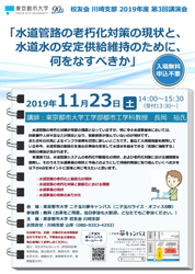 東京都市大学 校友会川崎支部 定例講演会「水道管路の老朽化対策の現状と、水道水の安定供給維持のために、何をなすべきか」