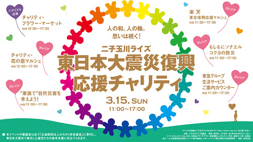 ![]() 今回で開催9回目を迎える、東日本大震災復興応援チャリティ。 チャリティフラワーマーケットや東北の美味しいグルメや人気の県産品などの販売、体験コーナーなどの復興応援ブースを展開します。 来場いただいた皆様からの義援金は、「公益財団法人みちのく未来基金」を通じて、震災孤児・遺児の進学支援に役立てられます。 【日時】3月15日(日)11:00~17:00 【場所】二子玉川ライズ ガレリア・ハナミズキ広場 【主催】二子玉川ライズ協議会 【協賛】楽天株式会社、コクヨ株式会社、イッツ・コミュニケーションズ株式会社、 東急セキュリティ株式会社、株式会社東急パワーサプライ、 東急保険コンサルティング株式会社、東急カード株式会社、 はじまりはじまりえん niko、東急株式会社 【協力】一般社団法人大船渡津波伝承館(3.11)∞実行委員会 【後援】世田谷区 |