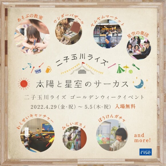 ![]() 「二子玉川ライズ」では、大人も子どもも楽しめるコンテンツが盛りだくさんの大人気のゴールデンウィークイベント「太陽と星空のサーカス」について、この度2019年以来3年ぶりに開催します! ライフスタイルアイテムが揃うマーケット「Wonder Bazar(ワンダーバザール)」、バリエーション豊かなアーティストたちが毎日登場する「星空の楽団」、大人も子どもも一緒になって楽しめるワークショップなどの人気コンテンツに加え、さらに今年はイベント10周年の特別コンテンツも登場。 オリジナルの太陽と星空のサーカス10周年記念切手を購入し、実際に手紙を出すことができる「みらいポスト」、ゴールデンウィークの思い出を持ち帰ることができるフォトスポットなども用意し、より一層イベントを盛り上げます。 この度出演アーティスト・出店店舗を発表いたしましたので、詳しくは特設サイトをご覧ください。 *詳細は今後も順次、特設WEBサイトにて更新してまいります。 *内容は予告なく変更となる場合がございます。予めご了承ください。 |