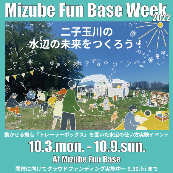 ![]() (一社)二子玉川エリアマネジメンツが世田谷区立兵庫島公園内の一角で運営する多摩川河川敷のスペースMizube Fun Baseで、水辺の使い方実験イベント「Mizube Fun Base Week2022」を開催します。 詳細は下記リンク ”「Mizube Fun Base Week2022」について” よりご覧ください。 この企画実現に至るまでの背景や経緯、私たちの思いなど記しております。 お読みいただき、「みんなで構想する二子玉川の水辺の未来」のスタートをご支援いただけますと幸いです。 【主催】 (一社)二子玉川エリアマネジメンツ |