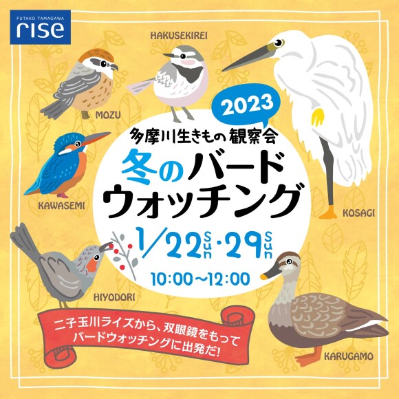 ![]() 二子玉川ライズは、多摩川と国分寺崖線の森に囲まれた複合商業施設です。建物(テラスマーケット)の屋上には、地域の生物ネットワークを途切れさせないよう、「ルーフガーデン」と呼ばれる屋上庭園が造られています。 「せたがや水辺の楽校」の講師と一緒に、二子玉川ライズの周辺に飛んでくる鳥たちを観察しませんか? 冬は、樹々の葉が少なく、渡り鳥もやってきてバードウォッチングには最適な季節です。 初めての方も大歓迎です! ■参加費:無料 ■対象:小学3年生以上のお子さまとそのご家族 ■お申込み:イベント申込サイトPeatixより受付 ※先着順 1月22日(日)の回は1月12日(木)10:00~受付 1月29日(日)の回は1月23日(月)10:00~受付 お申込みは下記URLから(※12日(木)10:00~受付開始) https://ikimono-bird20230122.peatix.com/ ※集合後、移動しながら観察します。暖かく、歩きやすい服装で、両手が空くリュックサックなどでお越しください。ルートは鳥の動きにあわせて、決定します。安全面の観点からベビーカーのお客さまはご参加いただけません。 ※双眼鏡をお貸しします。小さなお子さまには取り扱いが難しいため、3年生以下のお子さまは、保護者の方の補助をお願いいたします。 ※新型コロナウイルス感染の拡大状況や雨天荒天などの場合は急遽中止となることもあります。中止の場合は、ご参加の方に当日朝9:00までにメールにてご連絡いたします。 |