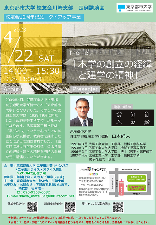 | 主催 | 東京都市大学 校友会 川崎支部 |