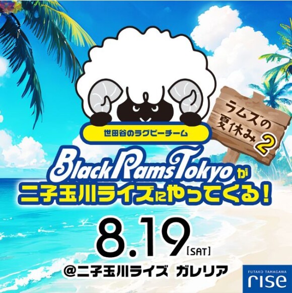 ![]() ブラックラムズ東京と一緒に、ラグビーのパスやキックに挑戦してみよう! 大人気マスコット「ラムまる」やオリジナルグッズも販売します。 ぜひお気軽にお立ち寄りください。 ※どなたでもご観覧・ご参加いただけます。 ※詳細は決まり次第別途ご案内します。 |