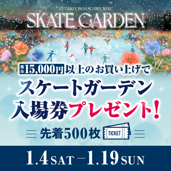 ![]() 期間中、二子玉川ライズ S.C. 対象店舗で15,000円以上(税込・合算不可)お買い上げしていただいたお客様を対象に、お買上レシートを引換場所にお持ちいただくと、スケート入場券を最大2枚プレゼント。 入場券はタウンフロント 1F インフォメーションセンターにてお渡ししております。 ぜひこの機会にお買い物をしてスケートガーデンをお楽しみください! ■入場券お渡し枚数 15,000円~30,000円未満のレシート1枚ご提示・・・入場券1枚 30,000円以上のレシートを1枚ご提示・・・・・・・入場券2枚 15,000円以上のレシートを2枚以上ご提示・・・・・入場券2枚 ■スケートガーデン入場券の詳細 ・配布期間:2025年1月4日(土)~1月19日(日) ・配布数 :先着500枚 ※なくなり次第終了 ・配布時間:10:00~20:00 ・配布場所:タウンフロント 1F インフォメーションセンター ・入場券有効期間:2025年1月4日(土)~3月2日(日) ■レシート対象外店舗 ・タウンフロント 東急フードショー、東急ストア、エクセル、ASJ東京サテライト、キッズヘアデザイン チョッキンズ、スタジオキャラット/ふりそでラブリ、PLAY! PARK ERIC CARLE(チケットが対象外・物販エリアは対象) ・リバーフロント 東急リバブル、ECC外語学院、イッツコムスポット、カラダ調整サロン プラナ・ガーデン、 島村楽器(音楽月会費が対象外・物販は対象)、伸芽会、スティーム キャンパス、プチミニョン ・ステーションマーケット 東急株式会社 住まいと暮らしのコンシェルジュ、だんのうえ眼科 二子玉川院、ローソン+トークス ・テラスマーケット アトリオドゥーエNext二子玉川、109シネマズ二子玉川、世田谷区 図書館カウンター二子玉川、 ファス、ファミマ!!、ポーラ スクエア フタコ、ローソン+トークス ・その他 各銀行、ATM、郵便局、行政サービス、その他イベント会場のチケット・店舗 ※ドッグウッドプラザ、オークモール、バーズモール、プラザモール、二子玉川 エクセルホテル東急等、 二子玉川ライズ・ショッピングセンター以外の施設の各店舗も対象外となります。 ■注意事項 ※一部レシート対象外の店舗・商品等がございます。 ※期間内 2025年1月4日(土)~1月19日(日)日付のレシートが対象です。 ※商品券・図書カードなどの金券類、スターバックスカードなどのプリペイドカード類、切手、印紙、その他店頭において指定した商品・サービス等のご購入は対象外となります。 ※年会費や月会費は対象外となります。 ※ネット決済やチケットレス・レシートレス決済、デリバリー等のお支払いは原則対象外となります。 ※インフォメーションセンターでは、レシートの裏面に当館の印を押印させていただきます。 ※スケートガーデン入場券はなくなり次第終了となります。 ※本キャンペーンは予告なく記載内容の変更や中止となる場合がございます。 |