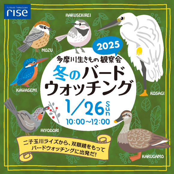 ![]() 二子玉川ライズは、多摩川と国分寺崖線の森に囲まれた複合施設です。国分寺崖線は地域の生物ネットワークをつなげる重要な自然。二子玉川ライズの建物(テラスマーケット)の屋上には、その地域の生物ネットワークを途切れさせないよう、「ルーフガーデン」と呼ばれる屋上庭園が造られています。「ルーフガーデン」を毎日お世話しているスタッフや、「せたがや水辺の楽校」の講師と一緒に、二子玉川ライズの周辺に飛んでくる鳥たちを観察しませんか? 冬は、樹々の葉が少なく、渡り鳥もやってきてバードウォッチングには最適な季節です。 ▶開催日時:2025年1月26日(日) 10時~12時(雨天中止) ▶集合:テラスマーケット4階 めだかの池レクチャールーム ▶参加費:無料 ▶対象:小学3年生以上のお子さんとそのご家族 ※集合後、移動しながら観察します。暖かく、歩きやすい服装で、両手が空くリュックサックなどでお越しください。ルートは鳥の動きにあわせて、決定します。安全面の観点からベビーカーのお客様はご参加いただけません。 ※双眼鏡をお貸しします。小さなお子様には取り扱いが難しいため、小学3年生未満のお子様は、保護者の方の補助をお願いいたします。 ※雨天荒天などの場合は急遽中止となることもあります。中止の場合は、ご参加の方に当日朝9時までにメールにてご連絡いたします。 ▶お申込み ※お申込みは、1月14日(火)10時よりピーテックスのみで受付いたします。定員になり次第締め切りとなります。 ※参加される方全員分(保護者、幼児も含む)のチケットをご登録ください。また、フォームに沿って、お申込み参加者全員のお名前(お子様については学年(年齢)も)をご明記ください。 主催:NPO法人せたがや水辺デザインネットワーク 協力:二子玉川ライズ 【リンク】 申し込みはコチラ(※1月14日10時~受付開始) https://ikimono-bird2025.peatix.com/ |