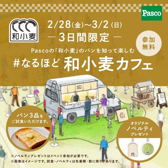 ![]() Pascoは、長きにわたりパンを小麦づくりから考えてきました。 その歴史から生まれた国産小麦商品の証が「和小麦」です。 この「和小麦」には、 “一言では表せられない”Pascoの想いが込められています。 だから、じっくりとその想いにふれてほしい。 そして、言葉では伝えられない「和小麦」の味わいは、 できるだけたくさんの方に、お気軽に実感いただきたいのです。 いつものパンを「和小麦」にしてみるきっかけになれば、うれしいです。 #なるほど和小麦 カフェ、少しだけオープンします。 【実施コンテンツ】 ★すべて無料でご参加いただけます。 ・Pascoの和小麦パン試食体験 ・「なるほど和小麦」クイズラリー ・和小麦畑のなりきりフォトスポット ・みんなで作ろう和小麦畑 シールパネル さらに、クイズラリーへのご参加や、イベントの様子をSNS投稿いただいた方には、 和小麦オリジナルアクリルキーホルダーをプレゼント! 主催:敷島製パン株式会社 【日時】 2月28日(金) 15:00~20:00 3月 1日(土) 10:00~18:00 3月 2日(日) 10:00~18:00 ※和小麦パンの試食会は無くなり次第終了となります。 【お問い合わせ】 ■イベント内容・商品について Pascoお客さま相談室 0120-084-835【受付時間】9:00~17:00(夏季休暇・年末年始・一部祝日を除く月~金) ■広報・メディアの方 Pascoなるほど和小麦PR事務局 TEL:03-5572-6072 Mail:pasco_wakomugi2024@vectorinc.co.jp ※なお、会場へのアクセス、開催時間については、 「二子玉川ライズ・ショッピングセンター インフォメーションセンター」までお問い合わせください。 TEL:03-3709-9109 【受付時間】10:00-20:00 【リンク】 Pascoの和小麦 特別ページ はこちら https://www.pasconet.co.jp/wakomugi/ Pasco公式 Instagramアカウントはこちら https://www.instagram.com/pasco.jp/ Pasco公式 Xアカウントはこちら https://x.com/pasco_jp |