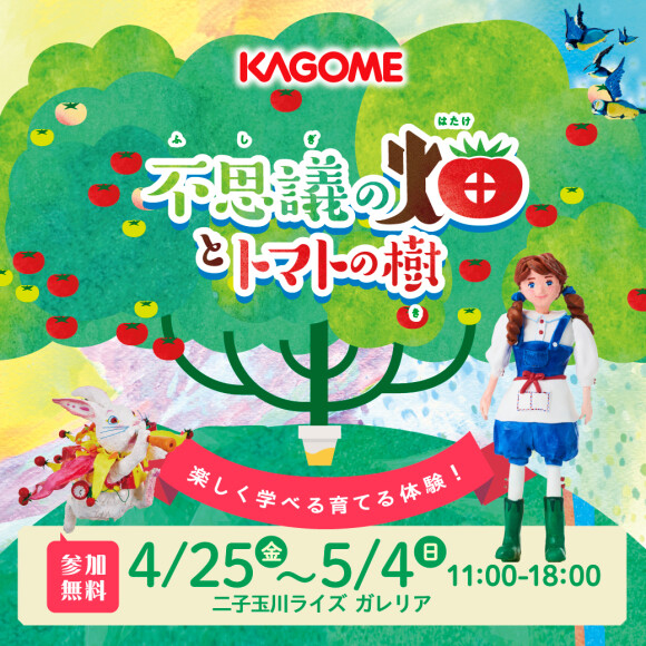 ![]() 高さ2.3mの「トマトの樹」で収穫体験! 実(ミ)ッションに挑戦する「”育つ”が学べる大冒険」の参加者には毎日先着でトマト苗をプレゼント! 他にも、クイズや謎解きで野菜を楽しく学べる「野菜先生からの挑戦状」や、「栽培相談コーナー」、巨大なすべり台がある「キッズ向けコーナー」など、大人も子供も楽しめるコンテンツが盛りだくさん。 野菜を育てる楽しさを体験できるイベントにぜひお立ち寄りください! 〜不思議の畑大冒険エリア〜 ・”育つ”が学べる!不思議の畑大冒険 >毎日先着400名にトマト苗プレゼント。他にも紙製トマト帽子や絵本もプレゼント。 ・集めよう!野菜の友達スタンプラリー >オリジナルステッカーをプレゼント 〜不思議の畑シンボルツリーエリア〜 ・トマトの無料収穫体験(毎日開催)※当日10時から整理券配布 ・トマトの木陰シアター >ナゾときミッション!野菜先生からの挑戦状 ※1日5回実施 >「不思議の畑のアリス」の読み聞かせ動画放映 ・キッズ向けコーナー >不思議なすべり台、土掘り宝探しコーナー、アリスの不思議な洞窟 〜トマトの森エリア〜 ・栽培質問コーナー ・ベジチェッ ク® ・バジルの種まき体験(100組限定) ・トマトの無料収穫体験 整理券 10:00〜 会場内の受付カウンターで先着順に整理券を配布いたします。 >開催時間 ①11:30〜 ②11:50〜 ③12:10~ ④12:30~ ※各回6組の体験を予定しております。 ※各日24組限定の実施を予定しております。 ※参加可能人数に限りがありますので、ご希望に添えない場合もございます。 ※当日のトマトの状態により、体験者組数を変更させていただく場合があります。 主催:カゴメ株式会社 |