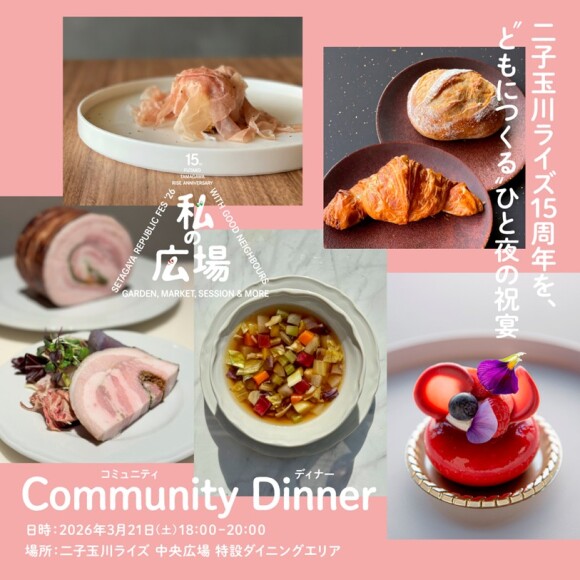 ![]() \\ 二子玉川ライズ15周年を、“ともにつくる”ひと夜の祝宴 // 二子玉川ライズ 15周年 アニバーサリーイベント 「私の広場 -SETAGAYA REPUBLIC FES-」。 目玉コンテンツの1つとして、二子玉川にお店を構える5店舗が集まり、 一夜限りの「コミュニティディナー」を開催します! 本イベントには、<NEW VALLEY、前芝料理店、 naturam、Echo、マヨルカ>の5店舗が参加。 各店舗がこの日のために特別メニューを用意し、 世田谷の食文化が持つ多様性と奥行きを味わっていただけます。 多様な人々が同じテーブルを囲み、食を通じて自然に交わり、 まちに新しいつながりが生まれる“食とカルチャーの祝祭”です。 さらに特別コンテンツとして、 ブロードキャスター ピーター・バラカン氏と、 コミュニティディナー監修を務めるNEW VALLEYオーナー 千葉 芳裕氏による、 世田谷の音楽と食文化をテーマにしたトークセッションを実施します。 トーク後には、バラカン氏によるDJが夜の空間に寄り添い、 食と音楽が混ざり合う時間をゆるやかに包み込みます。 ――――――――――――――――――――――――――――― <概要> ■ 日時:2026年3月21日(土)18:00〜20:00 ■ 会場:二子玉川ライズ 中央広場 特設ダイニングエリア ■ 参加店舗:NEW VALLEY / 前芝料理店 / naturam / Echo / マヨルカ ■ 料金:コミュニティディナーセット 5,000円(税込) (特別メニュー+1ドリンク付き) ※本イベントでは安全面の観点から、個別のアレルギー対応は行っておりません。 使用食材に含まれる可能性のあるアレルゲンは事前に明示し、 予約ページ(Peatix)にも注意事項として掲載いたします。 アレルギーをお持ちの方は、以下ご予約ページ 注意事項内の 「⑧アレルギーに関するご案内」の詳細をご確認のうえ、お客様ご自身での判断をお願いいたします。 ▷▷コミュニティディナー ご予約はこちら ※1/31(土) 10:00~予約開始 https://communitydinner.peatix.com/ イベント特設ページはこちら https://www.rise.sc/setagaya-republic/ 「SETAGAYA REPUBLIC FES」Instagramアカウントはこちら https://www.instagram.com/setagaya_republic/ ※「コミュニティディナー」 参加にあたる注意事項 https://www.rise.sc/uploads/pdfs/rise/000008/000008/99942e82.pdf |